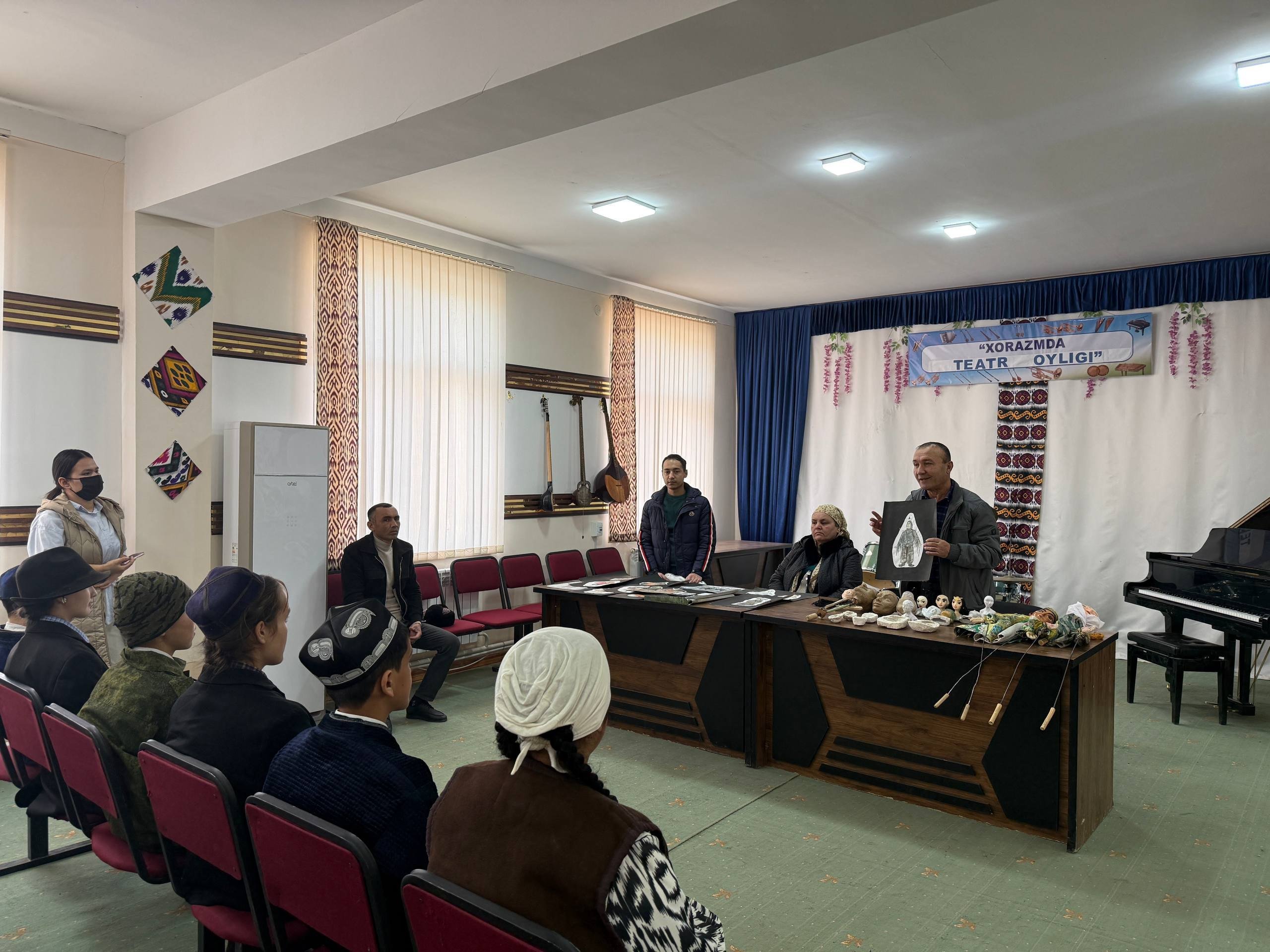 Xorazm viloyati Madaniyat boshqarmasi boshlig‘i G‘.Eshchanovning 2026-yilning 15-fevral kunidan 15-mart kuniga qadar “Xorazmda teatr oyligi” o‘tkazish bo‘yicha 2026-yil 13-fevral kunidagi 12/1-son buyrug‘i ijrosini ta'minlash maqsadida 2026-yil 5-mart kuni Xiva shahar Qo'g'irchoq teatri aktyorlari Bog'ot tuman 4-son bolalar musiqa va san'at maktabi teatr san'ati yo'nalishi o'quvchilariga maxorat dars o'tkazib berishdi.