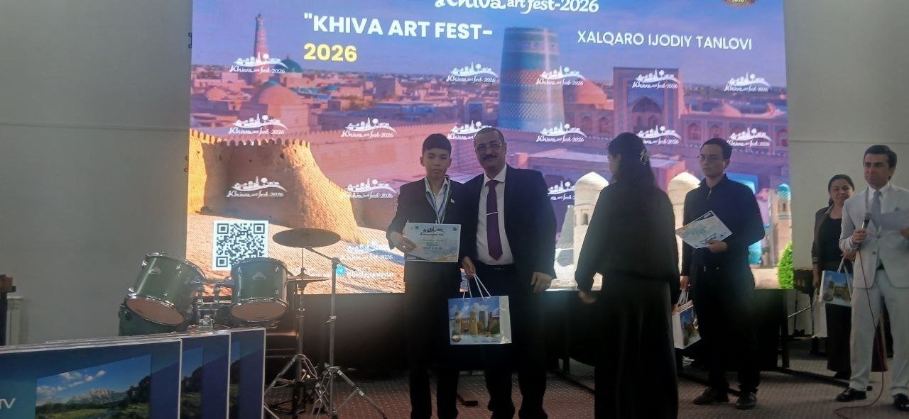 Bog’ot tuman 4-son bolalar musiqa va san’at maktabi “Khiva Art Fest – 2026” Xalqaro ijodiy tanlovida tasviriy san’at va Damli va zarbli cholg'ular Fleyta yo‘nalishida munosib natijalarga erishdilar: Damli va zarbli cholg'ular Fleyta mutaxassisligi o'quvchisi Rajabboyev Otabek faxirli 2- darajali diplom sohibi bo'ldi. Tasviriy san'at yo'nalishi Rang tasvir. Azadbayeva Zarinaxon va Farxodova Kumushbibi faxirli 2-darajali diplom sohibi bo'ldi.